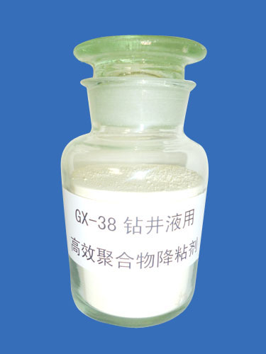GX-38有較強的稀釋作用,主要由其線性結構、低相對分子質量、及陰離子基團決定的。一方面,低相對分子質量可通過氫鍵優先吸附在粘土顆粒上,頂替掉原已吸附在粘土顆粒上的高分子聚合物,從而拆散了高聚物與粘土顆粒形成的‘橋接網架結構’;同時低分子量的降粘劑可與高分子量的聚合物發生交聯,阻礙了高聚物與粘土形成網架結構,達到**粘度和切力的作用。另一方面,陰離子基團能給粘土顆粒帶來較多的負電荷和水化層,使粘土顆粒端面處的水化膜厚度增加,從而拆散和削弱了粘土顆粒間通過端端和端面連接形成的網架結構使粘度下降。